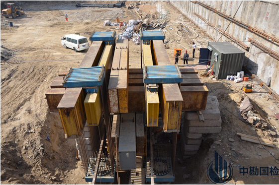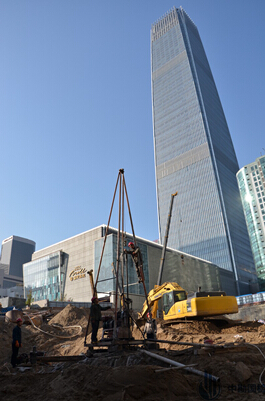 北京中勘国检工程技术有限公司继2012年10月完成中国国际贸易中心三期B1阶段工程塔楼钻孔灌注桩试桩检测工作后,于2013年4月10日又顺利完成了该项目塔楼工程桩的检测工作,本次检测共完成40000kN单桩竖向抗压试验1根,32000kN单桩竖向抗压试验3根,声波透射法检测20根,钻芯法检测8根,所有取芯均钻透桩端,达到设计要求,其中,TP1试桩取芯长度达67.42米,并入卵石层1m,取芯率100%。